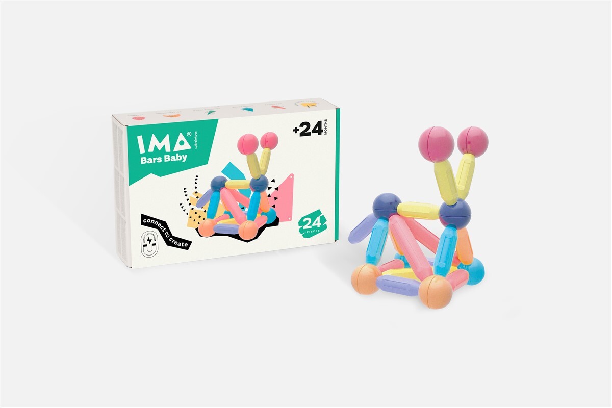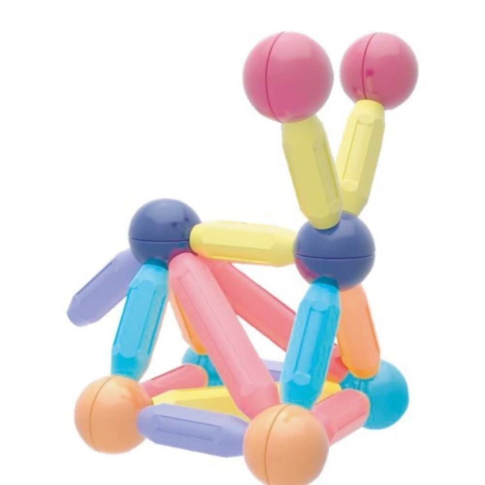 Juego magnético de construcción para los más pequeños de la casa. Compuesto por 24 piezas, barras imantadas de diferente tamaño y grandes bolas metálicas con potentes imanes para que conecten y así formas diferentes construcciones en 3D.