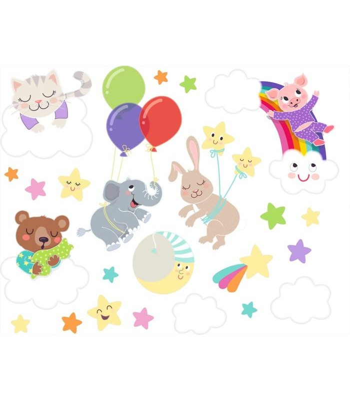 Total de 44 pegatinas con animalitos, estrellitas, nubes….