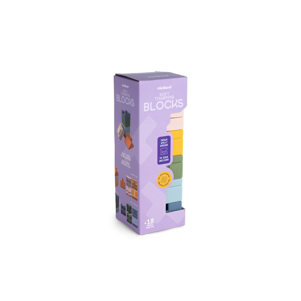 Soft Towering Blocks ofrece un set de bloques blanditos diseñados para bebés desde los 6 meses, fomentando el desarrollo de habilidades motrices y el juego creativo.